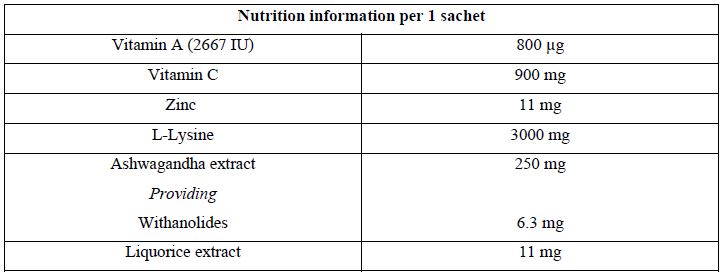 حاوی ال-لایزین، عصاره آشواگاندیا، ویتامینهای A و C، زینک و عصاره شیرین بیان
