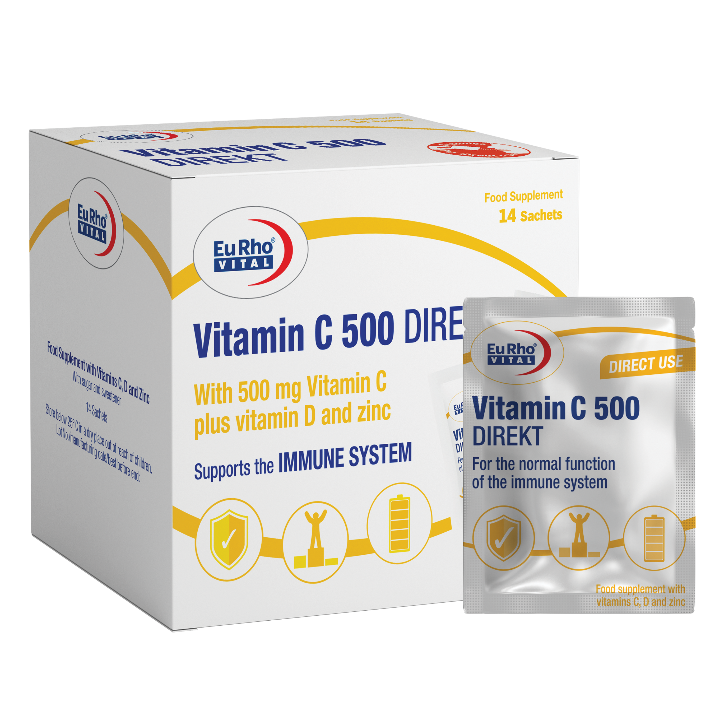 ساشه ویتامین ث 500 دایرکت یوروویتال حاوی 500 میلی‌گرم ویتامین C به‌همراه ویتامین D3 و زینک است که به تقویت سیستم ایمنی و حفظ سلامت پوست و مو کمک می‌کند. این مکمل به‌صورت ساشه خوراکی دایرکت با طعم پرتقال است و به‌راحتی قابل مصرف می‌باشد.