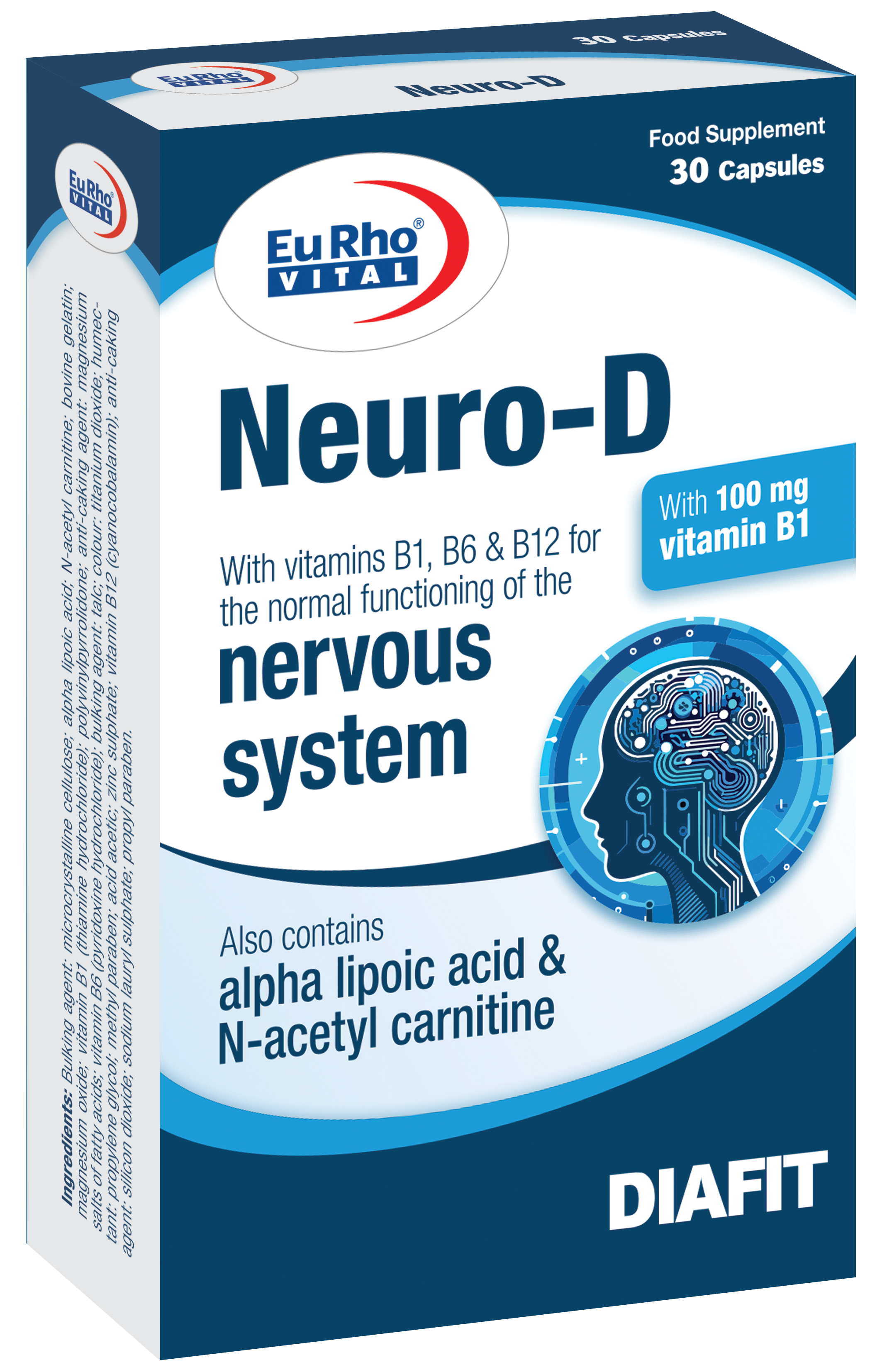 کمبود این ویتامین که در سالمندان و افراد مبتلا به دیابت شایع است، بروز اختلالات عصبی همچون بیحسی و گزگز دستها و پاها، ضعف حافظه و زوال عقل را بهدنبال دارد. مصرف مکمل B12 باعث افزایش سطح انرژی، تقویت حافظه و عملکرد مناسب سلولهای عصبی شده و از بروز اختلالات عصبی پیشگیری میکند. کپسول نورو-دی حاوی دوز مناسبی از ویتامین B12 است.